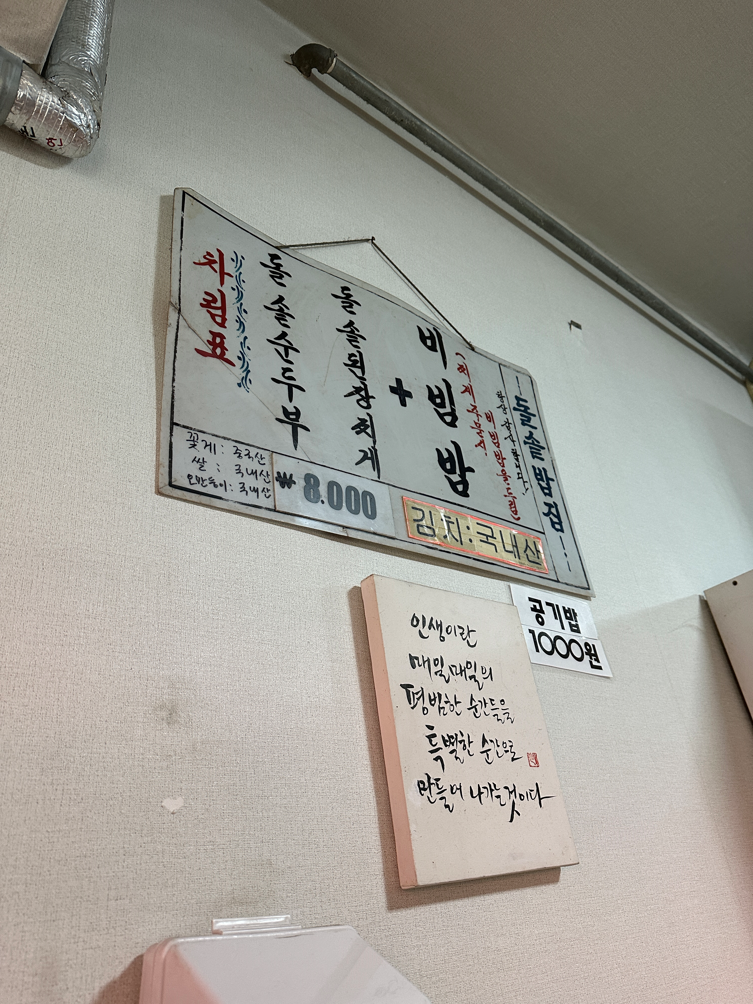 메뉴는 된장찌개와 순두부찌개 두 가지뿐이지만, 돌솥밥의 뜨끈함과 반찬의 조화는 그 이상을 경험하게 해줍니다. 특히 '남포동 돌솥비빔밥' 스타일로 즐길 수 있는 구성은 SNS에서도 큰 인기를 끌고 있죠.