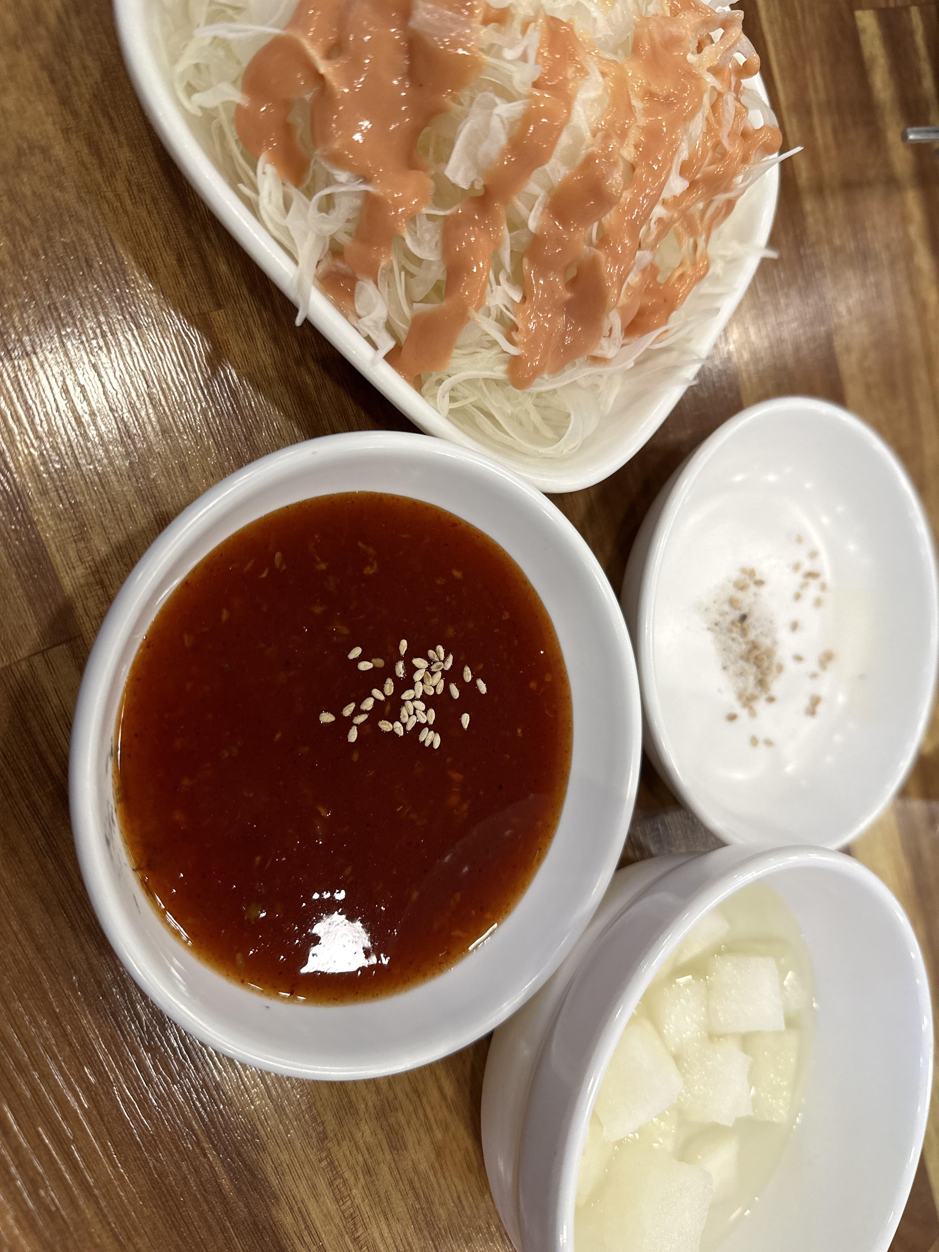 자리가 있어 바로 입장하시게 되면 개인별로 앞접시와 치킨무우와 소금1, 샐러드1, 소스 하나 아래 처럼 셋팅됩니다. 줄수는 일이 있어 웨이팅을 하기 위해서는 테이블링에 입력 후 기다리 시면 됩니다.