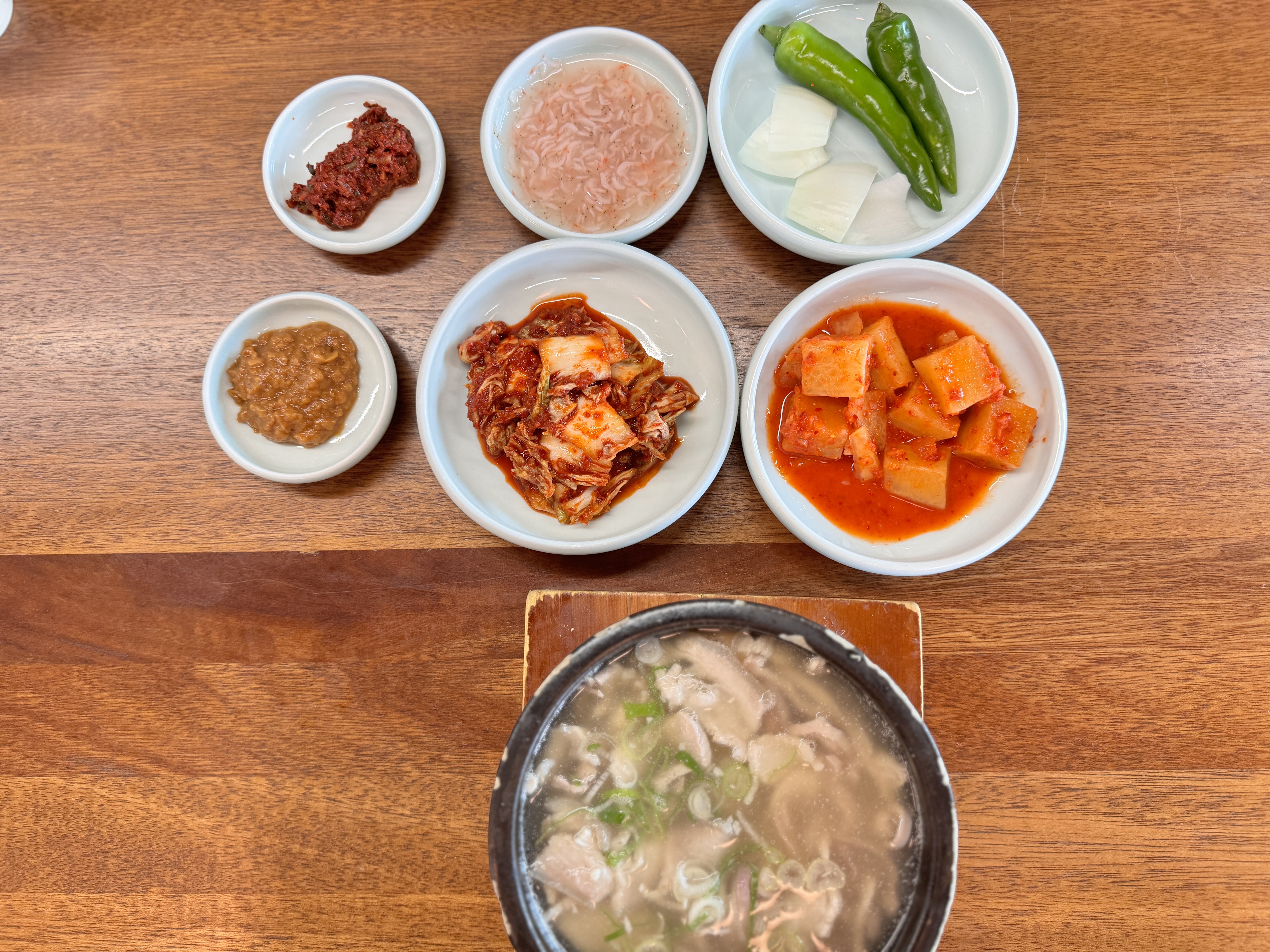 국물이 진하면서도 느끼하지 않아 국밥을 처음 접하는 분도 부담 없이 즐길 수 있었어요. 잡내 없는 고기는 도톰하게 썰려 나오고, 기본 반찬 구성도 깔끔했답니다. 새우젓이나 양념장 없이도 육수의 깊은 맛만으로 충분히 만족스러웠어요. 특히 다진 마늘과 들깨가루를 살짝 넣어 먹으면, 또 다른 풍미가 살아나서 매니아분들께는 더할 나위 없는 조합이에요!