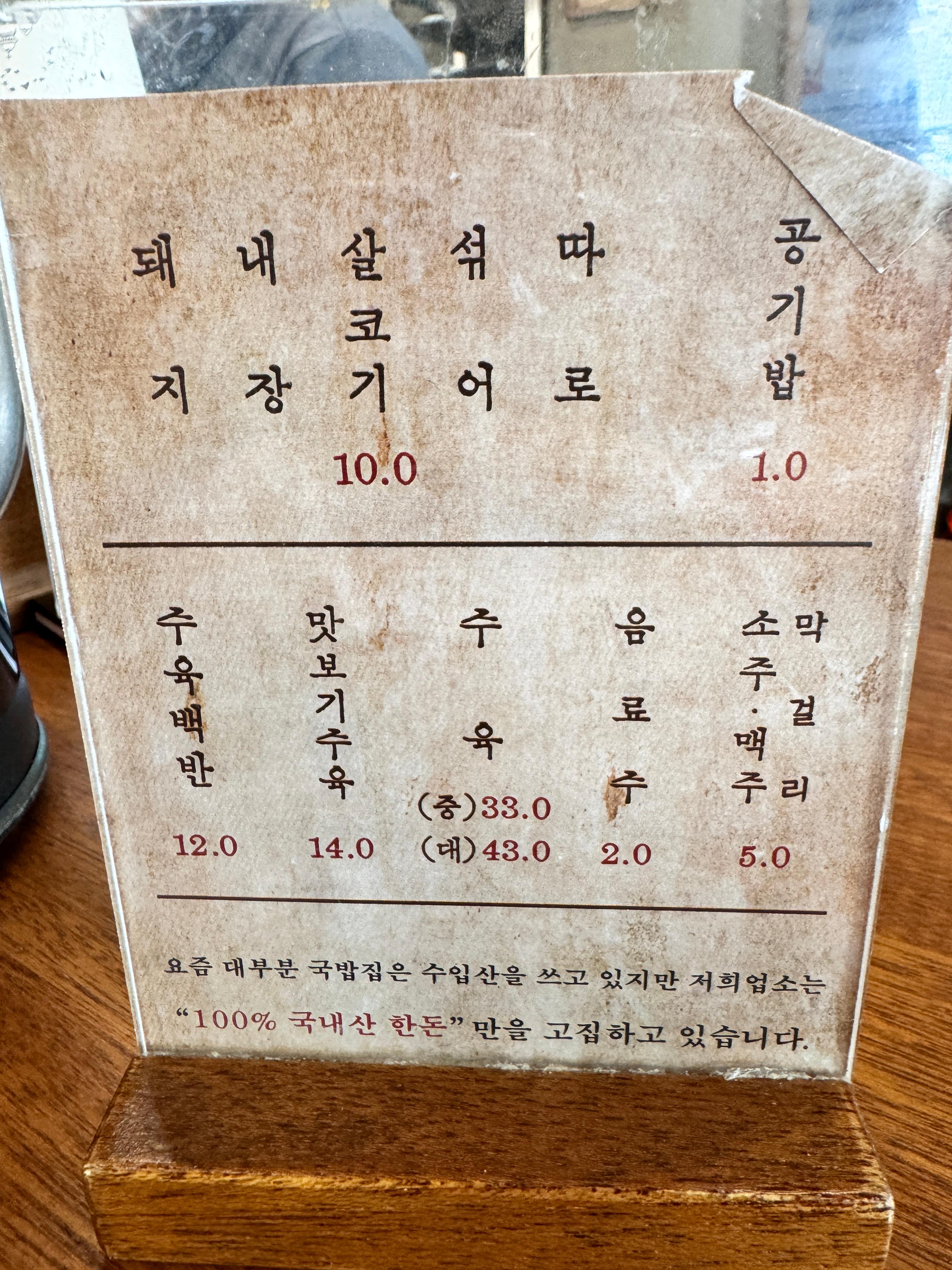 | 대표메뉴 | 돼지국밥, 순대국밥, 수육백반 |